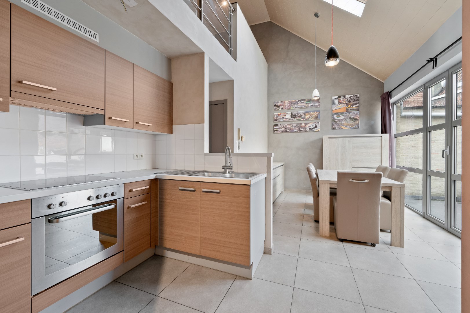 Het appartement bestaat uit twee verdiepingen. Beneden bevindt zich een ruime leefruimte met open volledig ingerichte keuken, apart toilet en ingerichte badkamer, die naast twee slaapkamers ligt. Via een groot schuifraam kom je op het rustige terras. Op de verdieping bevinden zich de cosy zithoek en de zeer ruime masterbedroom.