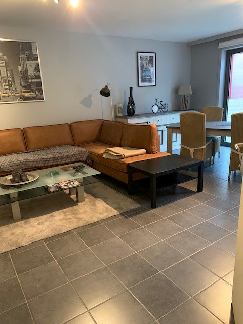 De inrichting is zeer praktisch: leefruimte met open ingerichte keuken en veel lichtinval. Er is een slaapkamer, een berging, een apart toilet en een badkamer met douche, bad en dubbel lavabomeubel. Op het gelijkvloers is er nog een extra ruime berging en gemeenschappelijke afgesloten buitenberging.