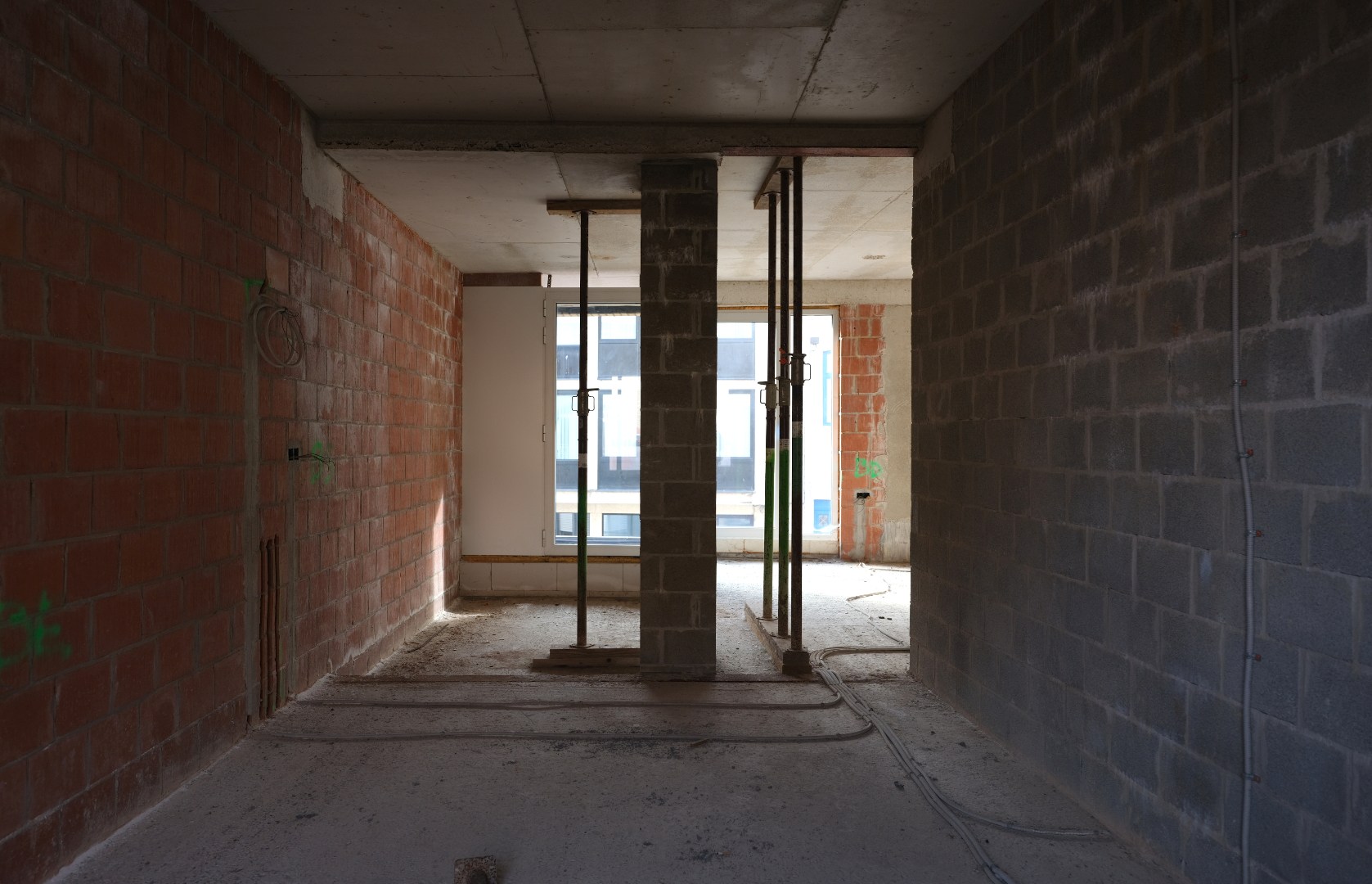 De appartementen bestaan (volgens plan) uit een inkom met vestiaire, woonkamer met open keuken en terras, nachthal, 1 slaapkamer, badkamer, bureauruimte en een privatieve kelder. Vuilnislokaal en fietsstalling voorzien.