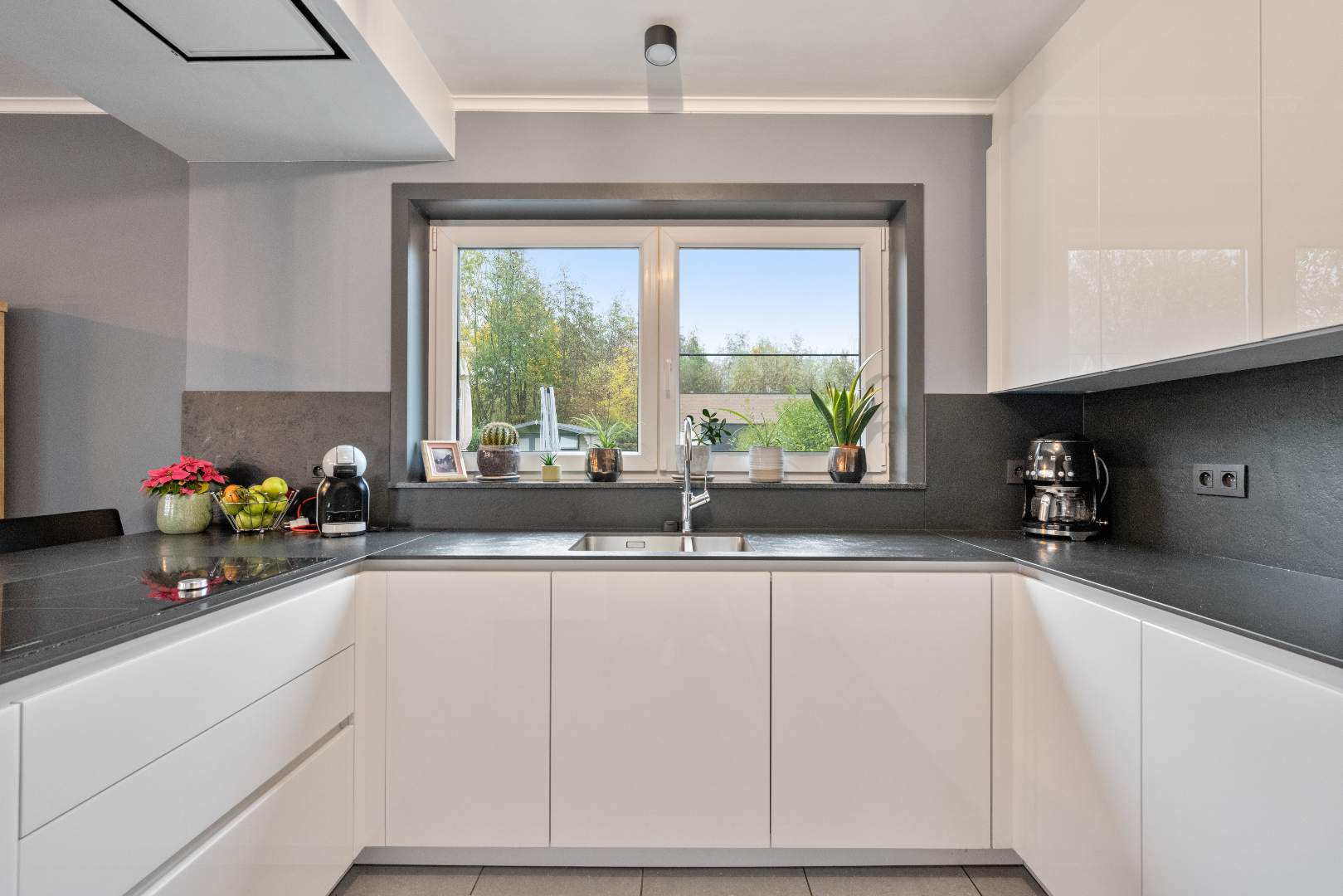 De villa bevindt zich in een rustige woonwijk, in een doodlopende straat, midden in het groen en toch liggen de toegangswegen naar Geraardsbergen en Ninove op een boogscheut.