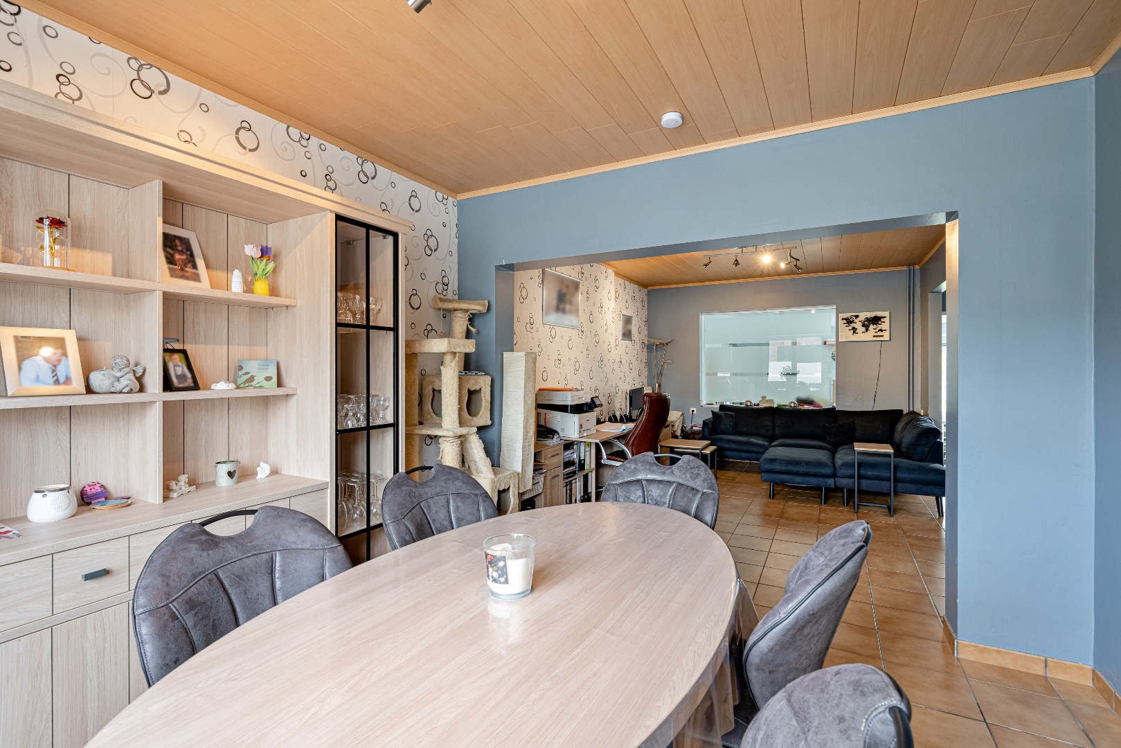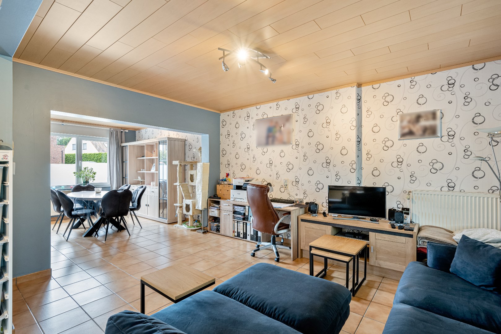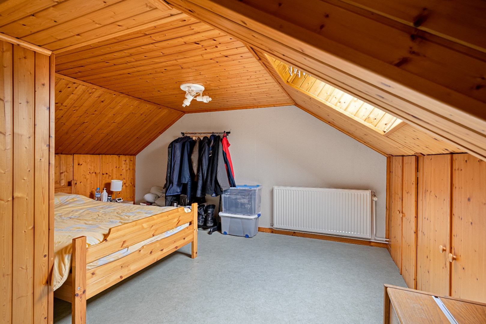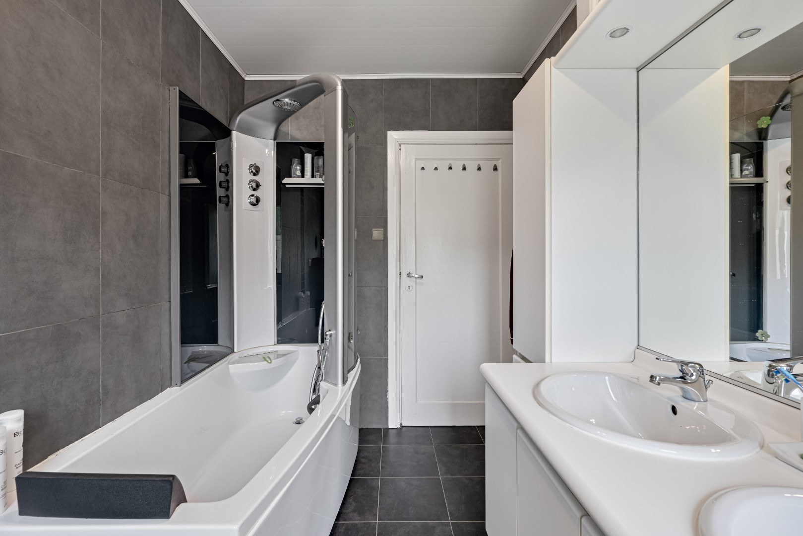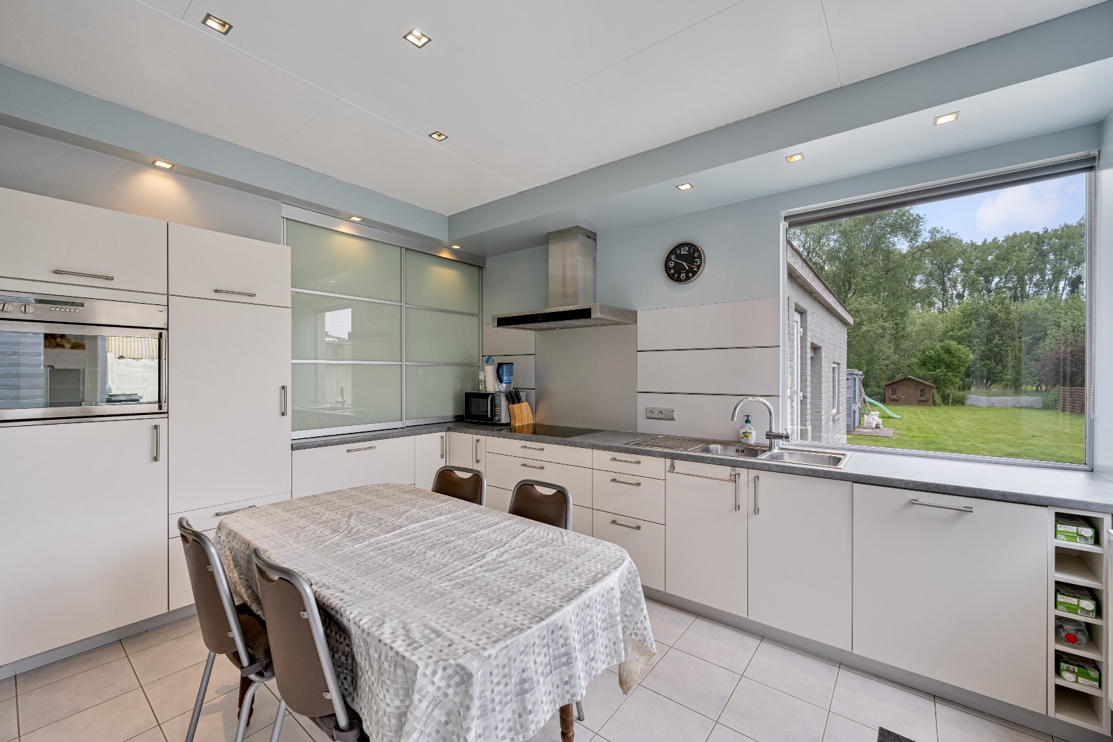 Via de inkomhal mat apart toilet en open trap, kom je in de gezellige leefruimte. Daarnaast bevindt zich de ruime en lichtrijke leefkeuken met zicht op het terras en de grote tuin. De keuken is voorzien van alle comfort. Aan opbergruimte geen gebrek in de talrijke en praktische bergingen en in de kelder. Op de eerste verdieping bevinden zich twee ruime slaapkamers, een bureelruimte/dressing én de praktische badkamer met bad/douche-combinatie, lavabomeubel en tweede toilet. Op de tweede verdieping, toegankelijk met vaste trap, bevinden zich de derde slaapkamer en een zolderruimte.
