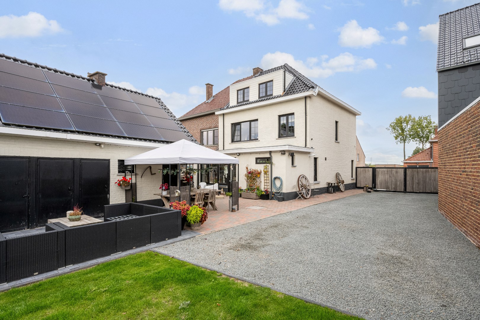 Deze woning werd volledig gerenoveerd en biedt een combinatie van modern wooncomfort, energiezuinigheid en toekomstpotentieel. Ze bevindt zich op een ruim perceel van bijna 9are met een grote oprit en een elektrische poort, wat zorgt voor optimale privacy en veel parkeerruimte. Een bijkomend voordeel is dat een deel van het terrein kan worden afgesplitst als bouwgrond voor gesloten bebouwing, wat deze eigendom extra interessant maakt voor wie toekomstplannen of investeringsmogelijkheden overweegt. De elektriciteit is volledig conform en de nieuwe zwarte PVC-ramen zorgen voor een uitstekende isolatie en een hedendaagse uitstraling. De voordeur in afromosia vormt een stijlvolle blikvanger. De 16 zonnepanelen en de nieuwe hoogrendementsketel beperken aanzienlijk het energieverbruik. Binnenin bevindt zich een nieuwe, volledig uitgeruste keuken. Er zijn twee badkamers en drie slaapkamers. De ruime zolderverdieping biedt bijkomende mogelijkheden en voorzien van elektriciteit om verder in te richten als extra kamers, bureau of polyvalente ruimte. Daarnaast zijn er een regenwaterput, voorziening voor jacuzzi en zonnige terrassen. Het bijgebouw is uitgerust met een buitenkeuken en een aansluitende werkruimte, wat heel wat mogelijkheden biedt voor bergruimte, een hobbyruimte of zelfs een praktijk aan huis.